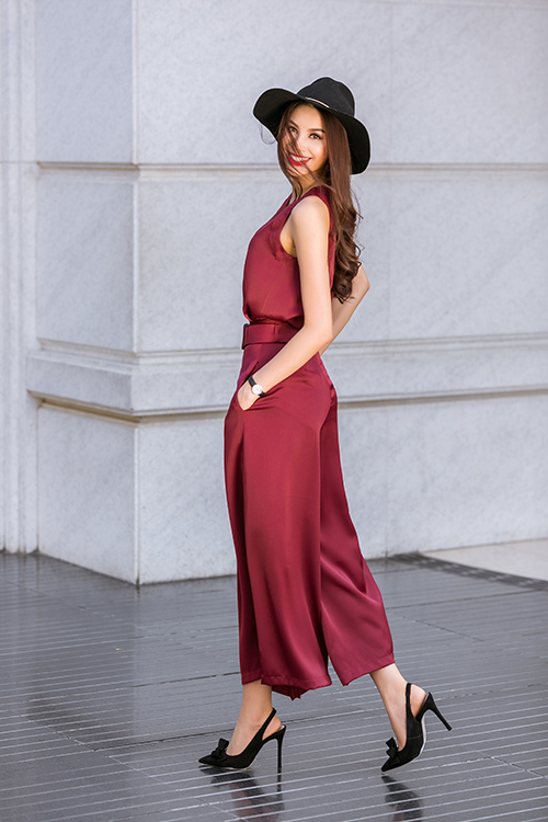 Jumpsuit có thiết kế quần cullottes ống rộng kèm thắt lưng tạo điểm nhấn cực kì dễ nhìn có giá gần 700.000 đồng là một trong những chọn thú vị cho street style của Phạm Hương.