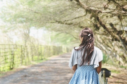 Gần đây, dân cư mạng đang lan truyền hình ảnh bóng lưng của một nữ sinh có mái tóc xoăn dài mặc váy xanh, tay cầm mũ đang bước đi dưới một hàng cây cỏ mát trong một ngày nắng đẹp.